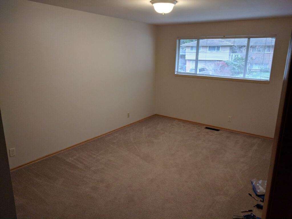 I picked the room furthest from the big noise offenders (front door, kitchen, furnace, etc.) and with another spare room between me and my boyfriend’s home office. After all… you can treat a room for noise, but you can’t soundproof unless you’re building from scratch.