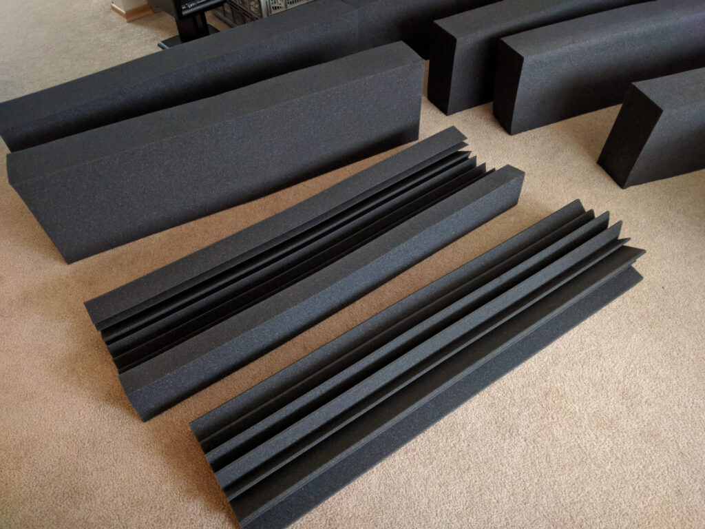 There’s also the corner wedges that many of you are familiar with. Bass frequencies love to bounce around in corners and build in bizarre ways. If you’ve got the money or the ingenuity, there’s some complicated things called bass traps you can buy or build. Most of the work can be done with super-thick corner wedges though.